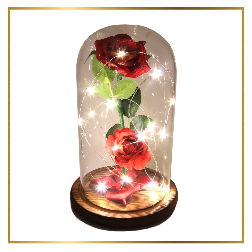 💡 Immerse yourself in the enchantment of our "Beauty and the Beast" arrangement. Encased in a glass dome, the red rose comes alive with the soft glow of LED lights, creating an ethereal ambiance that evokes a sense of wonder and romance. Watch as the rose radiates its beauty and illuminates the surroundings with a magical glow.