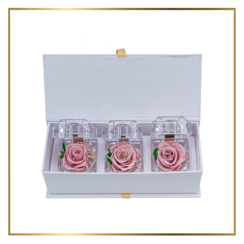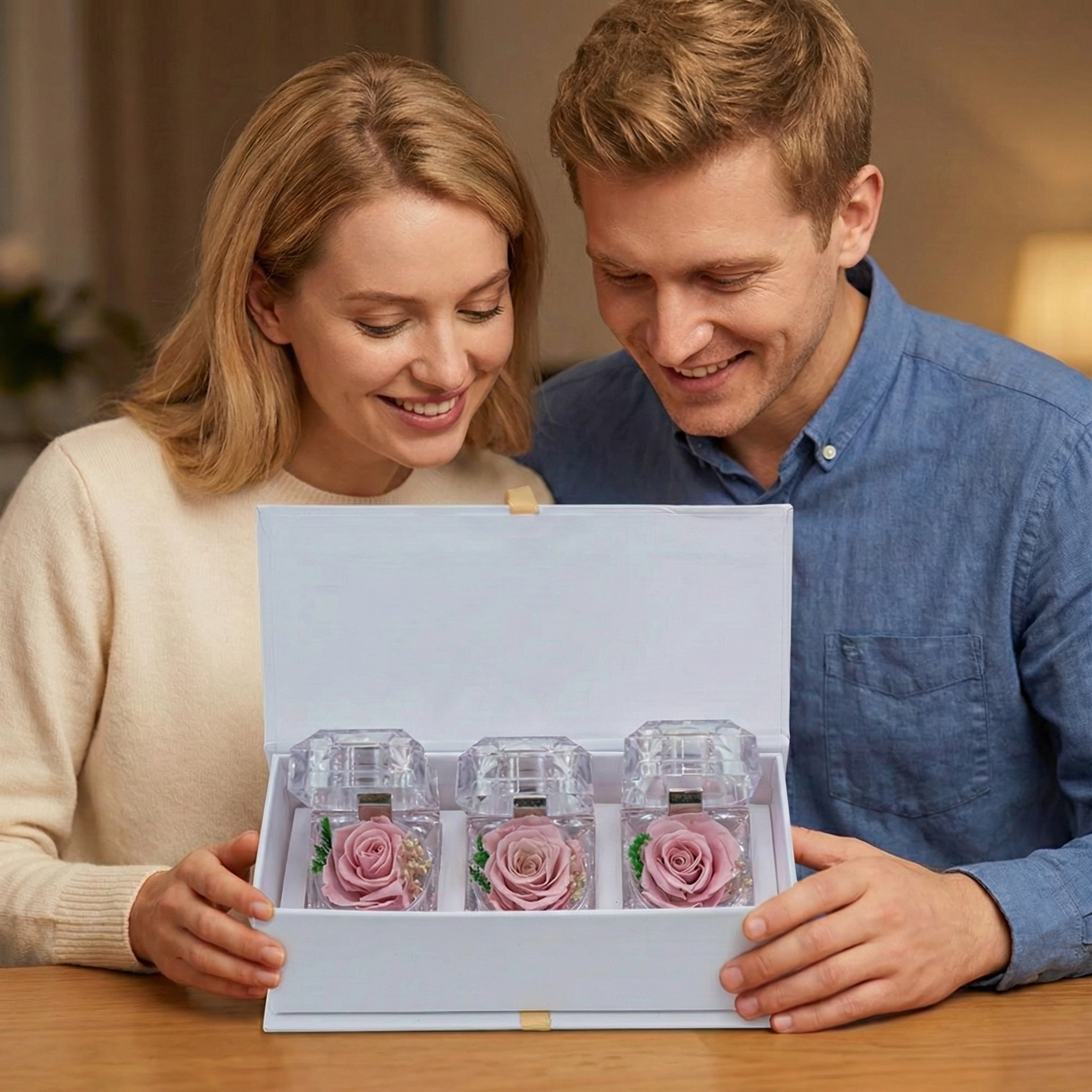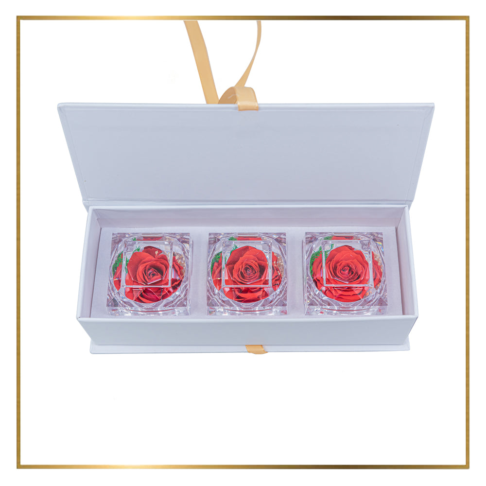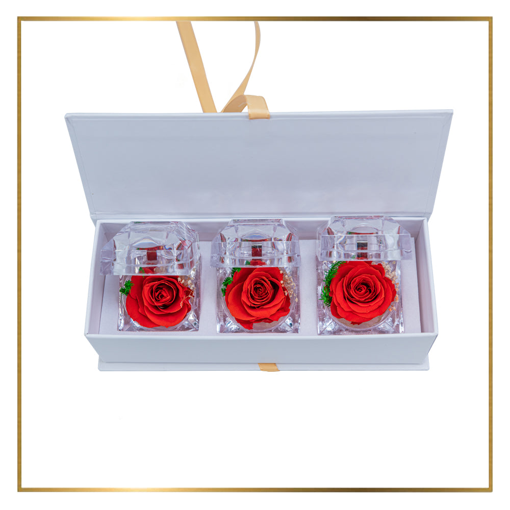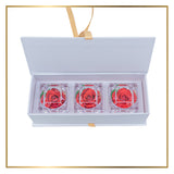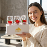 🌼✨ Each mini rose in the "Love Bundle" is encased in a small, transparent case that can be opened and closed. This delightful feature allows your loved one to admire the intricate details of each delicate bloom, preserving the beauty of these miniature roses for years to come. The clear case adds a touch of elegance, creating a mesmerizing visual display that is sure to captivate and charm.