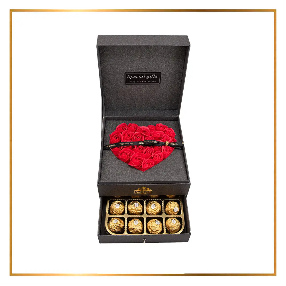 💞 Immerse yourself in the magic of romance with our "Magic Box." Its breathtaking arrangement, exquisite craftsmanship, and delightful chocolates will sweep your special someone off their feet, creating memories that will last a lifetime.
