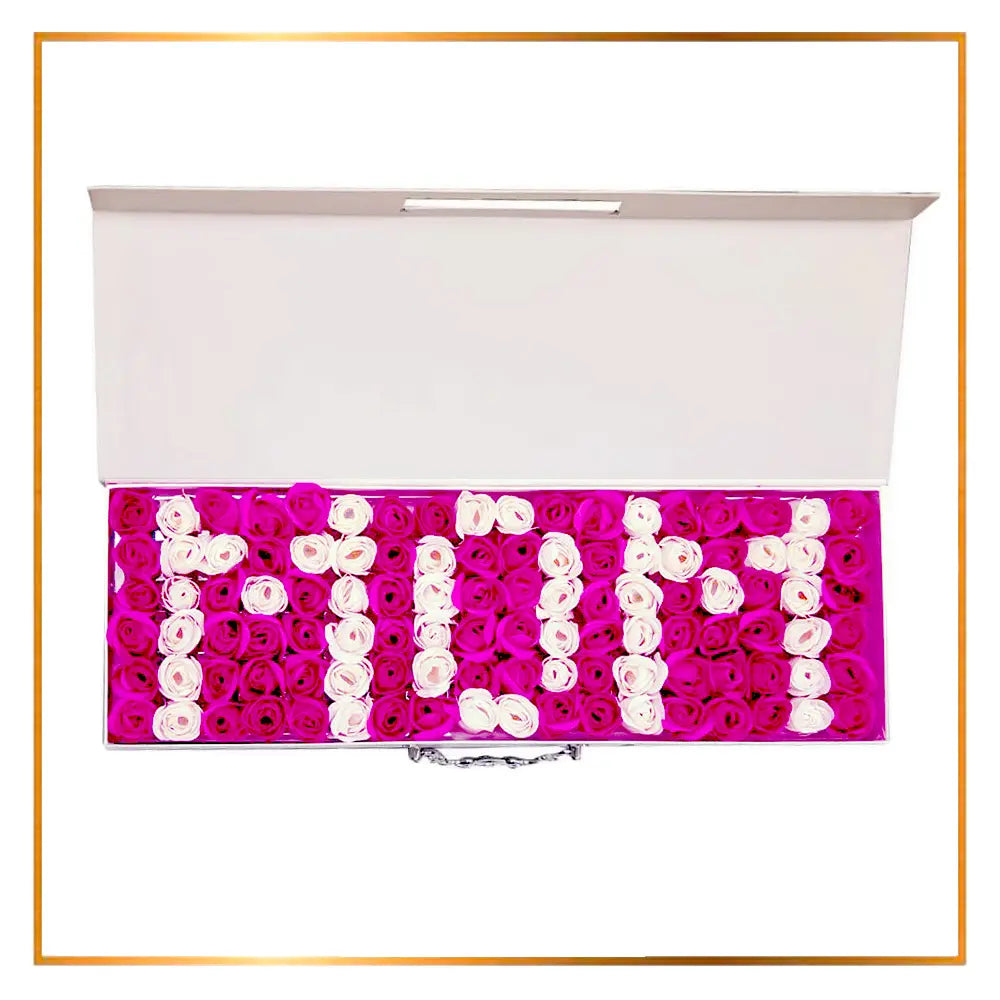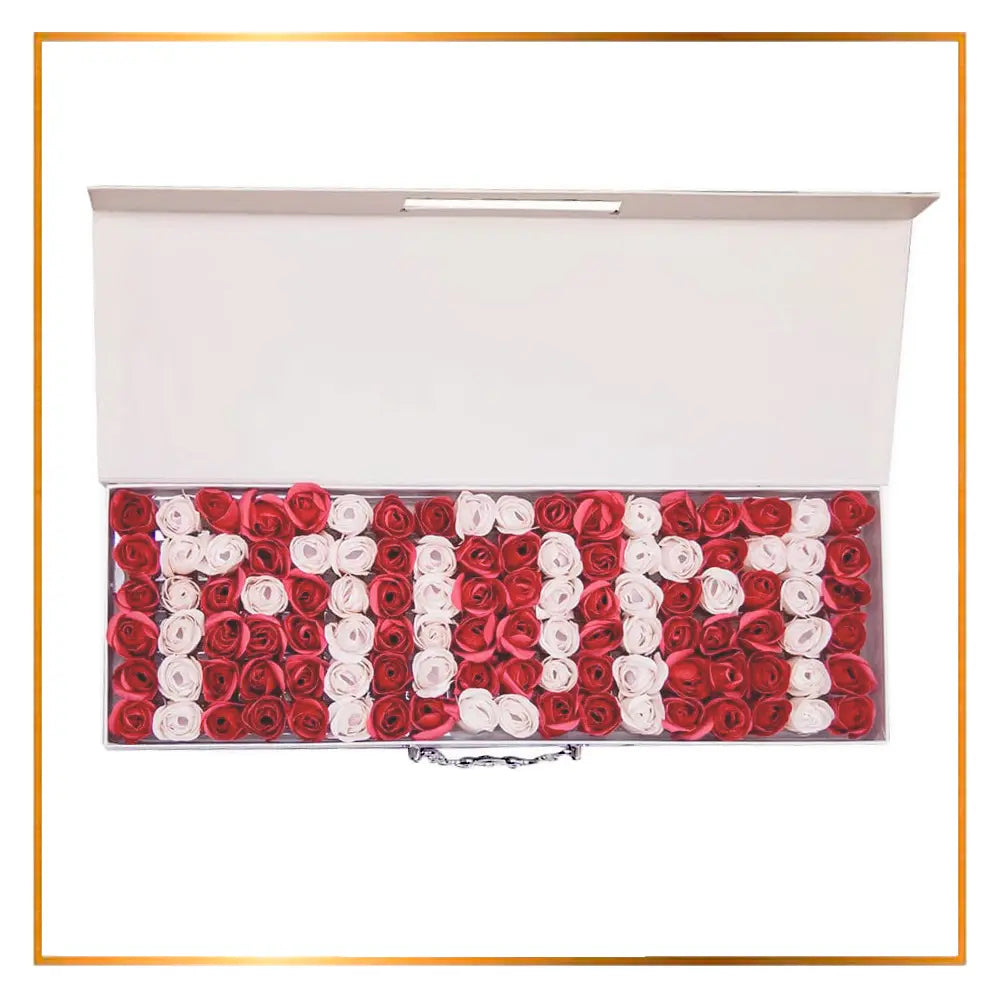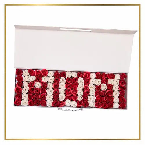 🎁✨ The "Mom Suitcase" features a stunning arrangement of handcrafted, everlasting decorative soap roses. You have the option to choose between vibrant red roses or elegant white roses, allowing you to personalize the gift to your mom's taste. The roses are beautifully arranged inside a decorative suitcase, creating a unique and captivating display.