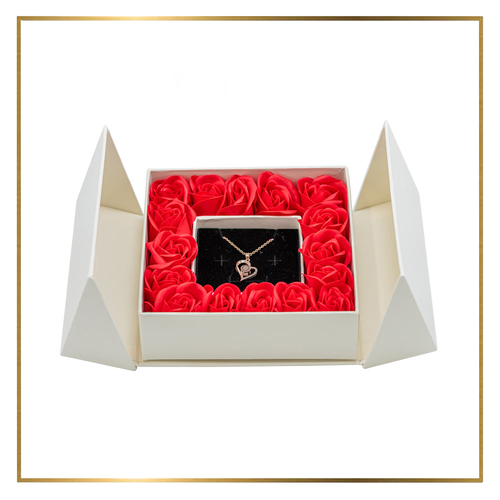 🌹🎁 Our "Rose and Necklace Box" is a true work of art, meticulously crafted to perfection. It features 16 handcrafted red decorative soap roses, delicately arranged around the central necklace section. Each rose embodies everlasting beauty, symbolizing a love that withstands the test of time. These exquisite roses serve as a testament to the depth of your affection and the eternal bond you share with your beloved.