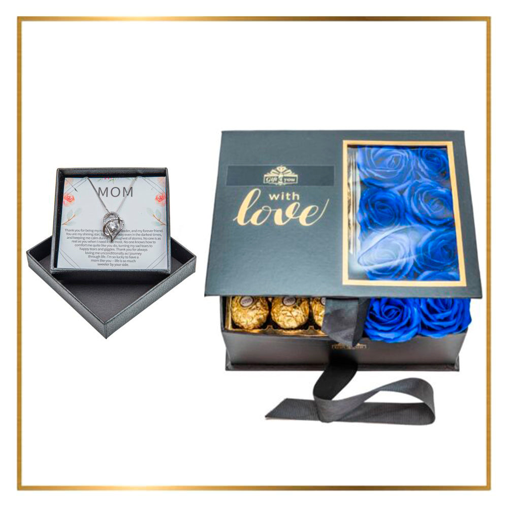 🎉 Make your mom's day unforgettable with the "Love Mom Special" gift set. This remarkable collection, featuring decorative soap roses, premium chocolates, and the sentimental Mom Necklace, will make her feel truly loved and cherished.
