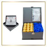 🎁 Inside the elegantly designed box, you'll find a breathtaking arrangement of 8 handcrafted, everlasting, decorative soap roses. Available in two enchanting colors—red and blue—these roses symbolize love, devotion, and admiration, allowing you to express your emotions in a unique and meaningful way.